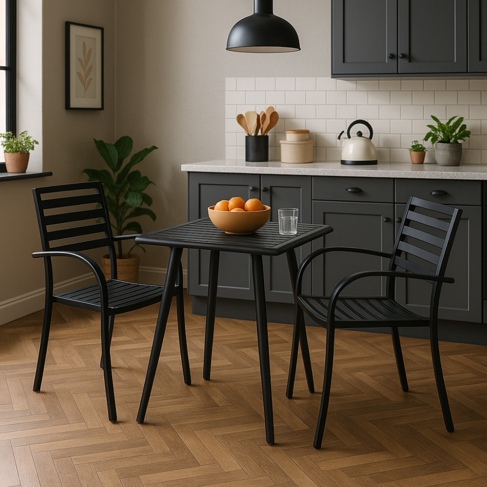 استمتع بأجواء الهواء الطلق من متجر ڤي ماركت مع طقم الجلسة الخارجية الأنيق المكون من 3 قطع: كرسيين مريحين وطاولة عملية مصنوعة من الحديد الأسود المتين. بتصميمه العصري ولمساته الأنيقة، يضفي هذا الطقم لمسة راقية على حديقتك أو شرفتك. مقاوم للعوامل الجوية وسهل التنظيف، مما يجعله الخيار المثالي للاسترخاء أو الاستمتاع بلحظات هادئة في الخارج.