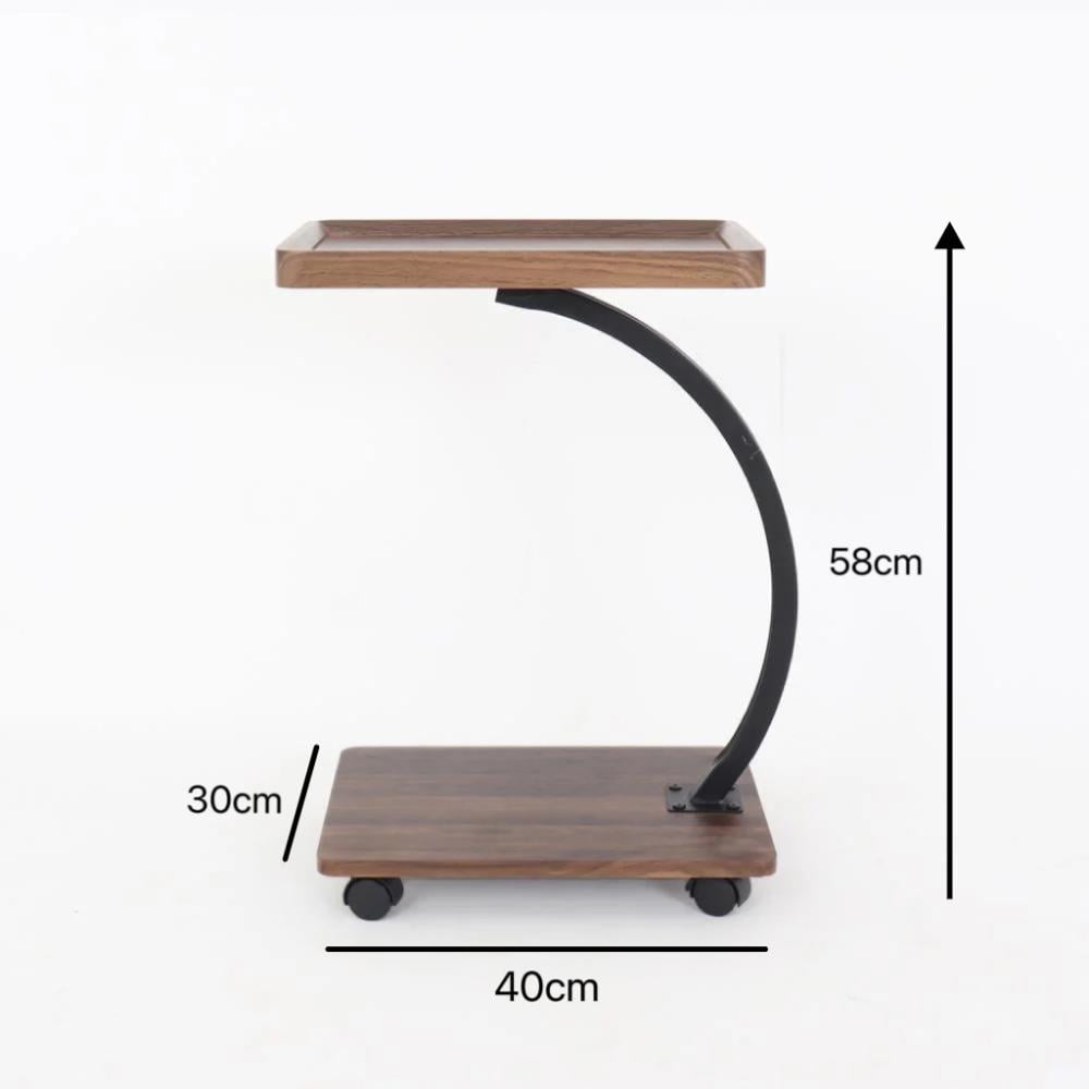 طاولة جانبية أنيقة وعملية بتصميم عصري يجمع بين الجمال والوظيفة. مصنوعة من خشب متين مع إطار معدني منحني يضفي لمسة راقية على أي مساحة. تأتي مع سطح علوي مثالي لتقديم القهوة أو وضع اللوازم اليومية، إضافةً إلى رف سفلي لتخزين المجلات أو الديكورات الصغيرة. عجلاتها المتحركة تسهّل تنقلها في جميع أنحاء المنزل، مما يجعلها قطعة مثالية لغرف المعيشة والمكاتب.