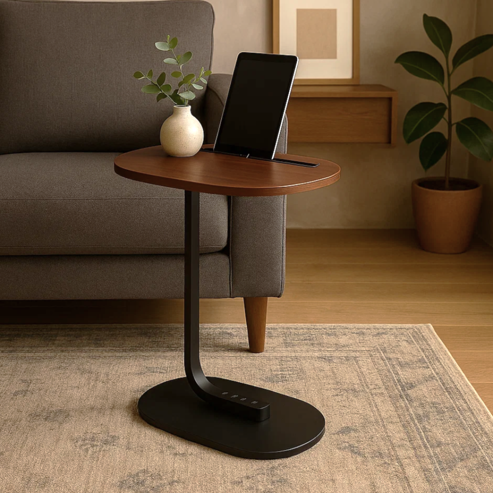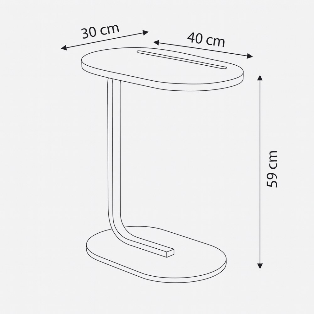 الطاولة مزودة بمجرى مدمج مصمم بعناية لتسهيل ترتيب الأجهزة اللوحية والهواتف الذكية أو الكتب والمجلات، مما يجعلها مثالية للاستخدام بجانب الأريكة أو السرير. حجمها المدمج يناسب المساحات الصغيرة دون التضحية بالأناقة أو الوظيفة.