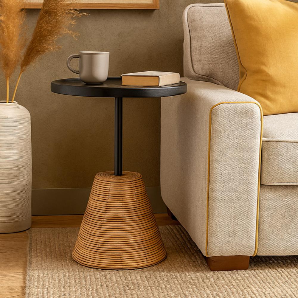 الألوان: تجمع بين اللونين الأسود والخشب الفاتح، مما يضفي جمالاً ويتناسب مع مختلف ألوان الأثاث.