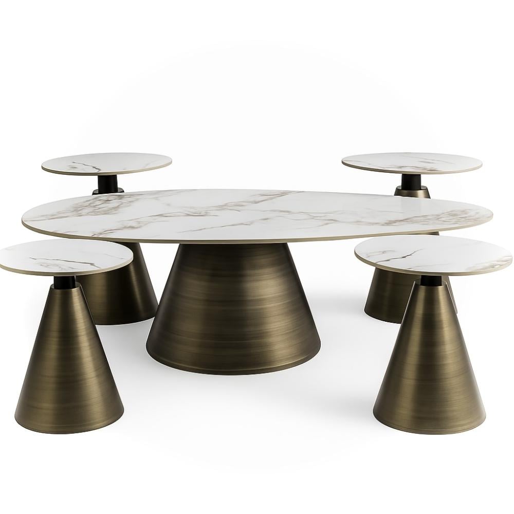 طقم طاولات فاخرة بتصميم رخامي 1+4