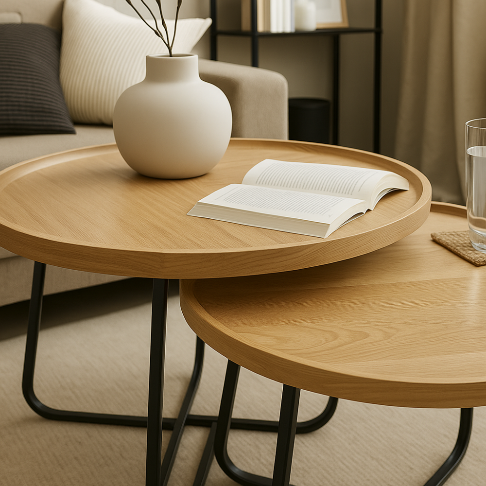 أحصل من متجر ڤي ماركت علي لمسة من الدفء والبساطة إلى منزلك مع طقم طاولات القهوة الدائرية ذات اللون الخشبي الفاتح. يتميز هذا الطقم بتصميمه الأنيق الذي يدمج بين الأسطح الخشبية الطبيعية والقواعد المعدنية المتينة، ليجمع بين الطابع العصري والجمالي. مثالي لغرفة المعيشة أو المكتب، حيث يوفر سطحًا عمليًا وديكوريًا في الوقت نفسه. تصميمه العصري يناسب جميع أنماط الديكور، مما يجعله اختيارًا مثاليًا لإضافة لمسة مميزة إلى مساحتك.