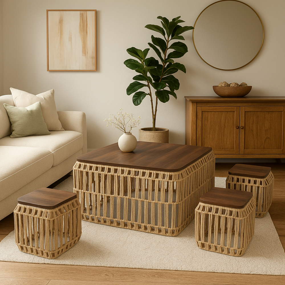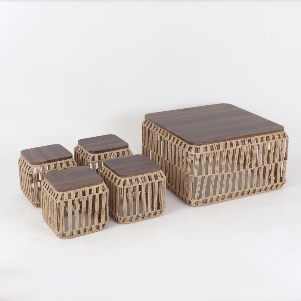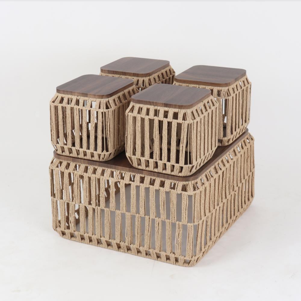 طقم طاولات 4+1 خزف بأسطح خشبي