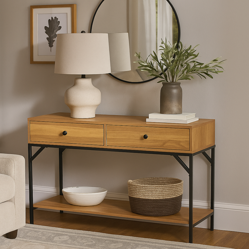 مدخل خشبي مع درجين - قواعد سوداء - رف للتخزين مدخل خشبي مع درجين - قواعد سوداء - رف للتخزين
