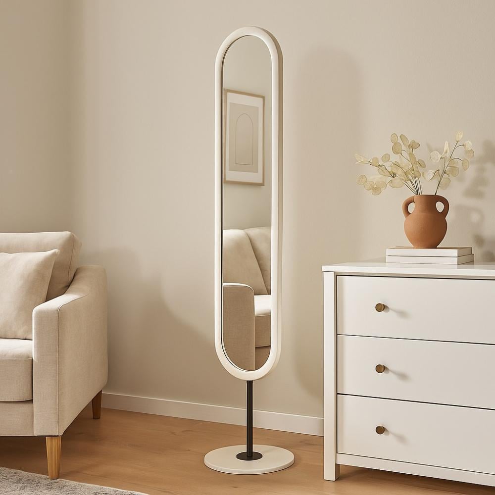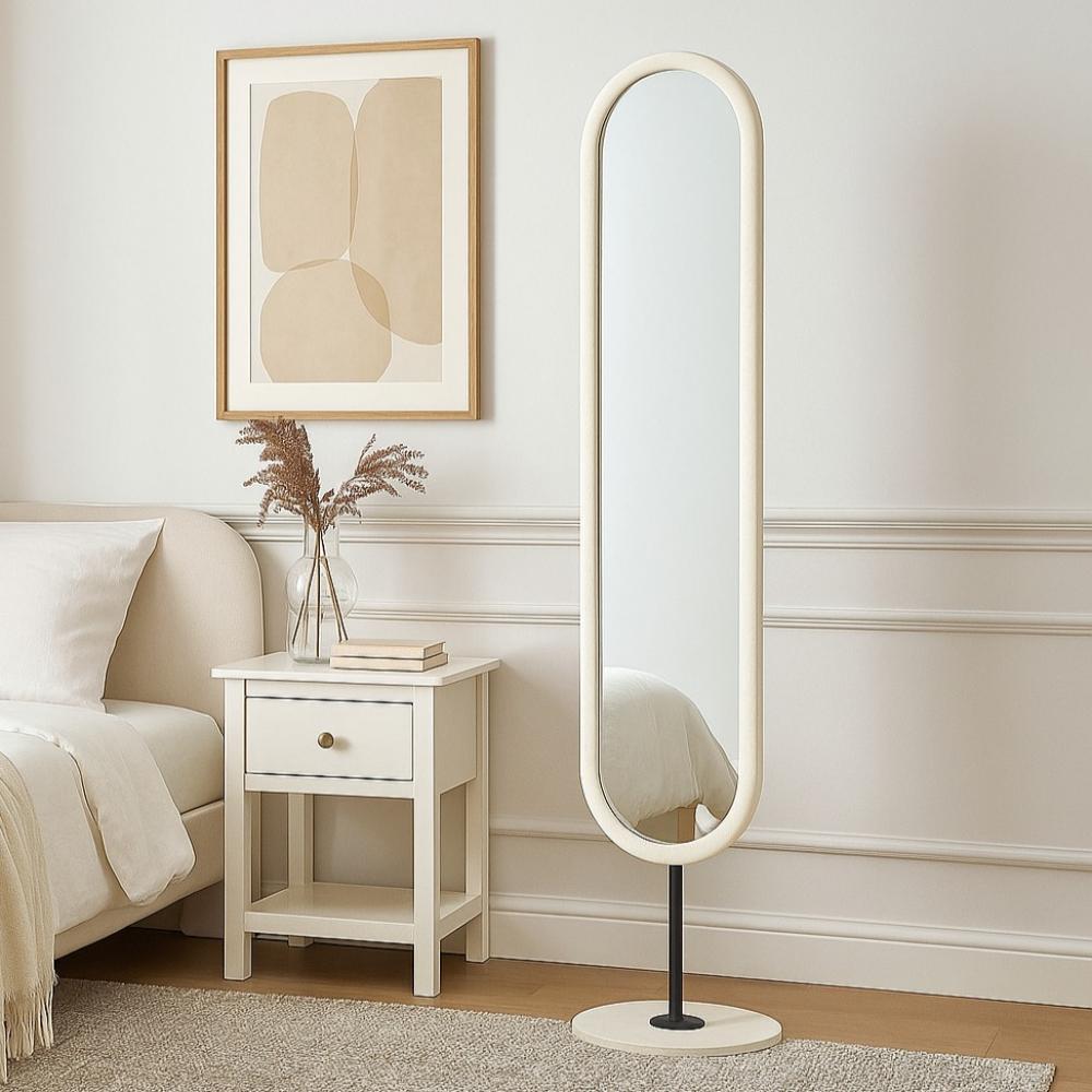 مرآة أرضية بإطار بيضاوي أنيق ولمسة عصرية، تضيف لمسة فاخرة لأي مساحة