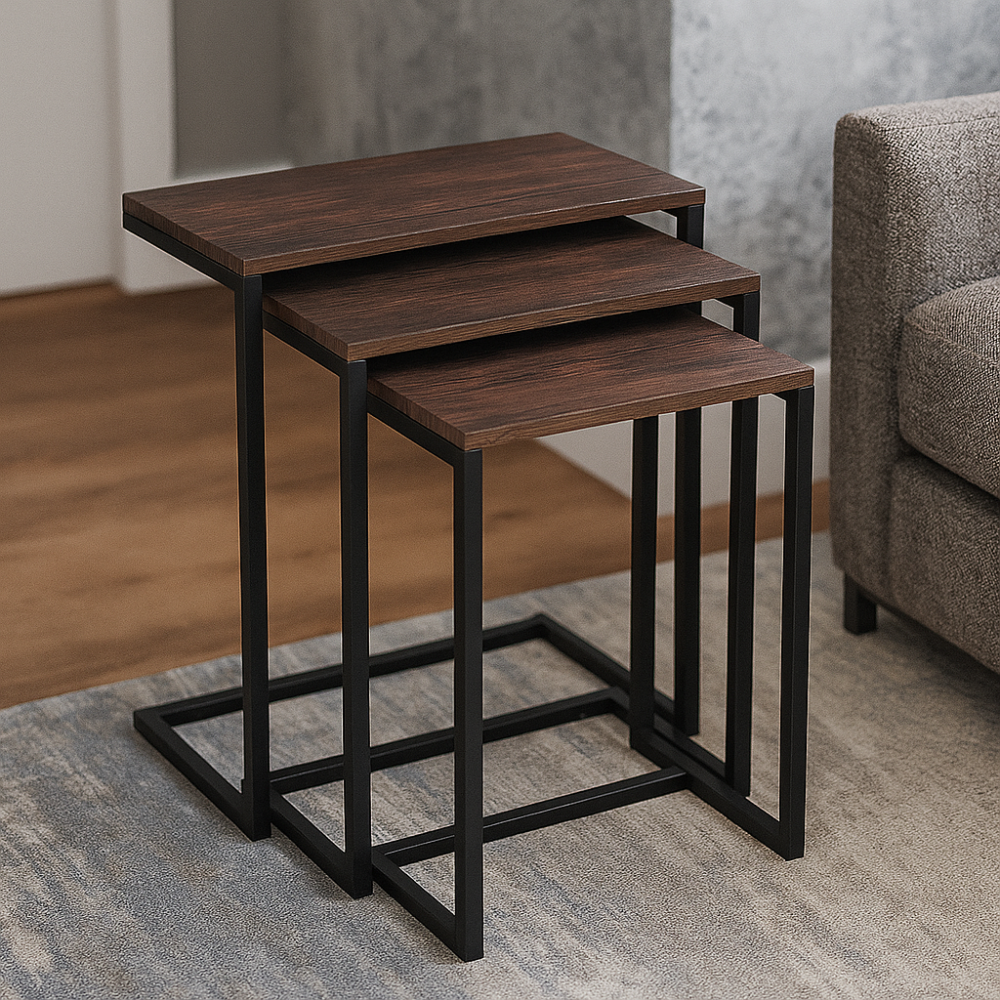 ارتقِ بتصميم منزلك عبر التسوق من ڤي ماركت مع طقم 3 طاولات خدمة أنيقة تجمع بين الجمال العملي والتصميم العصري. يتميز الطقم بقواعد من الحديد الأسود المتين وسطح خشبي داكن فاخر يعكس لمسة من الفخامة والدفء. تصميم الطاولات المتناسق يجعلها مثالية للاستخدام كطاولات خدمة أو كقطع ديكور في أي غرفة، مما يضيف جاذبية وأناقة إلى مساحتك.